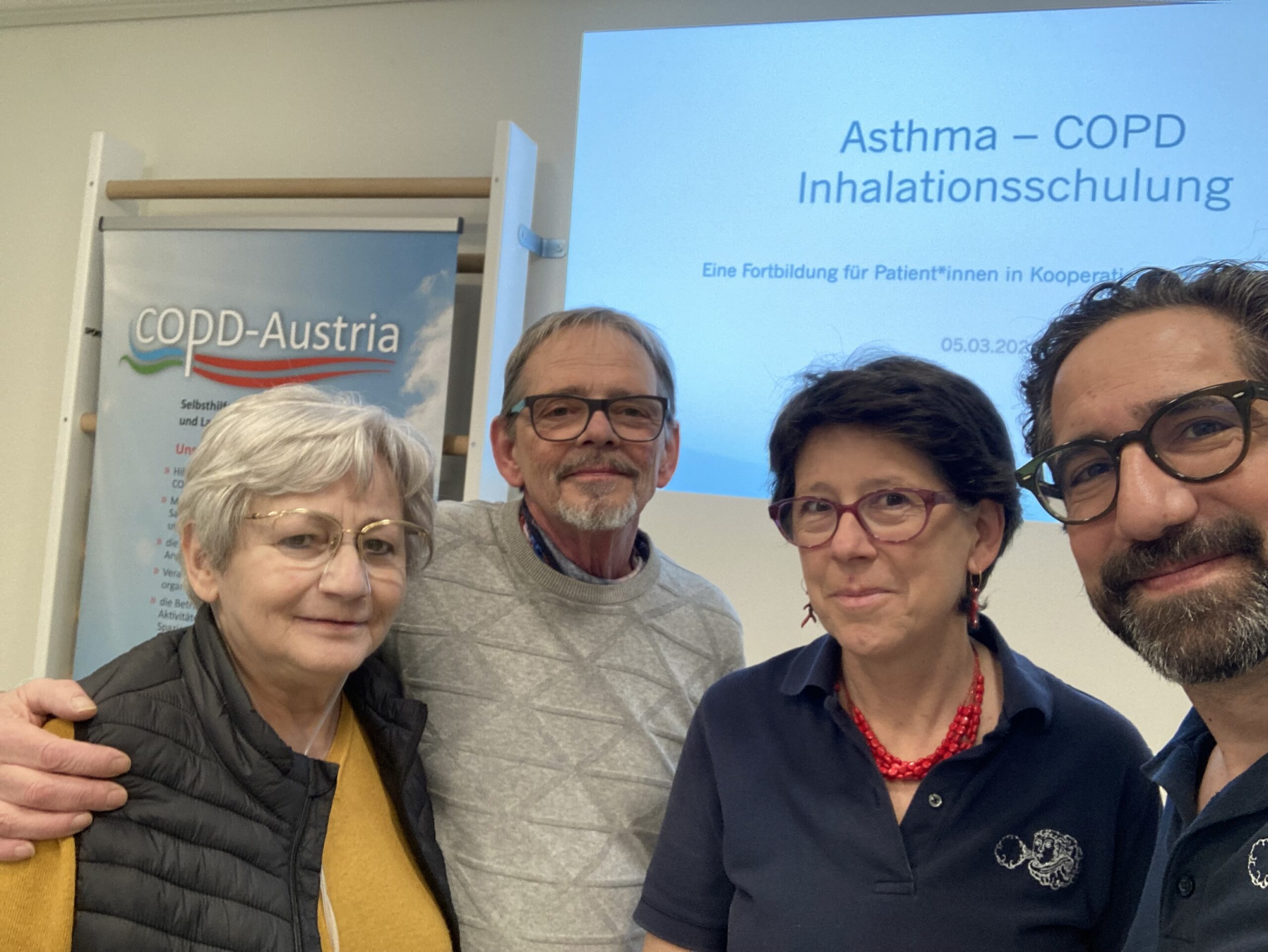Die COPD-Austria lud in Zusammenarbeit mit „Pflege neu“ zu Vortrag & Schulung mit DGKP Josef Christian Neumeister für Menschen mit COPD und anderen Lungenerkrankungen. Interessierte Mitarbeiter der Pulmologischen Ambulanz, dem Pflegebereich sowie Betroffene folgten aufmerksam den Ausführungen und praktischen Darstellungen des Referenten. Am Ende der Veranstaltung konnte man Josef Neumeister noch Fragen stellen und sich die Inhalatoren erklären lassen.